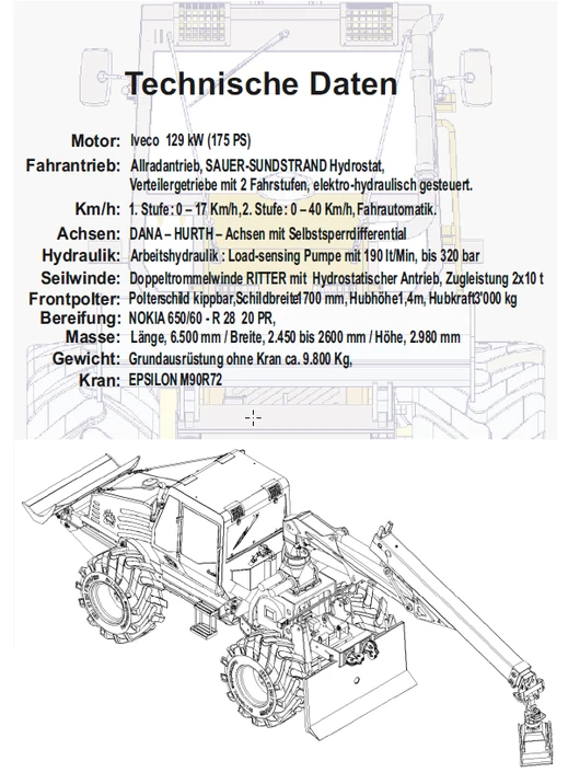 Grundausrüstung ohne Kran ca. 9.800 Kg,